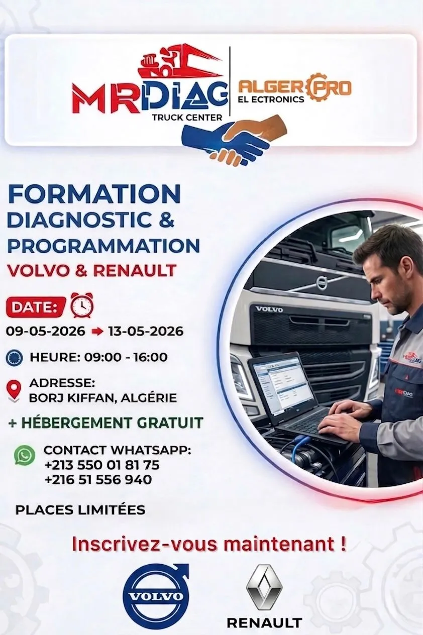 Formation Diagnostic & Programmation Camions et Bus Volvo & Renault – Stage Professionnel en Algérie (Mai 2026) Formation Diagnostic & Pro...